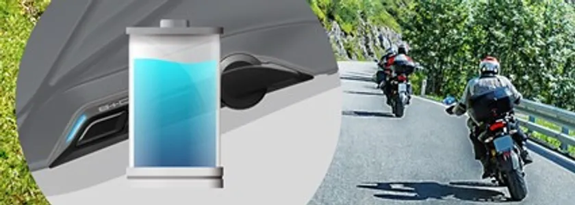 これまでバッテリー一体型だったB+COMをメインユニットとボタンユニットに分離させることで、ヘルメットになじむスリムなデザインと、バッテリー使用可能時間最大20時間(※)の両立を実現。仲間たちとのツーリングはもちろん、泊まりがけの遠方へのソロツーリングでも、残りの充電時間を気にすることなく楽しむことができます。