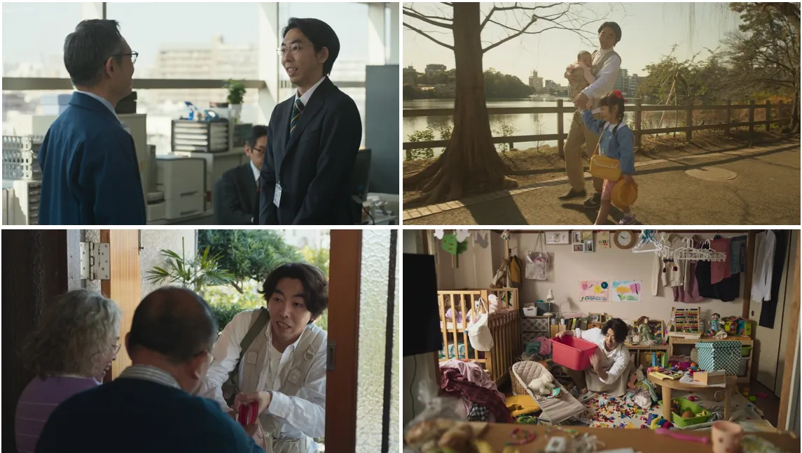 本CMでは、育休を取得したお父さんが2人の子どもの育児に奮闘する姿を描いています。今回、お父さん役を俳優の柄本時生さん、お母さん役を女優の北浦愛さん、長女役を子役の鈴木玲奈さんが演じています。育児の理想と現実の差にとまどいながらも、かわいい子どもたちを一生懸命育てる柄本さんの姿に注目です。
