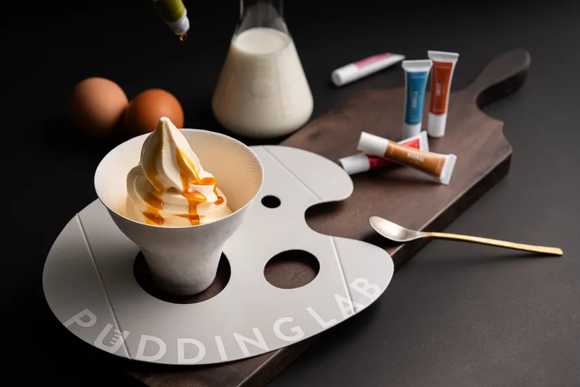 「プリン味のソフトクリーム」ではなく、「プリンそのもの」がソフトクリーム状になっているという、世界中を探してもおそらくここでしか食べられない、プリンの新しい形なのです。