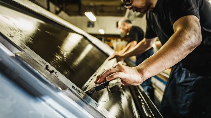 繊細な絵柄は、シルクスクリーンに焼き付けられた型を通じて精巧に再現。通常のこいのぼりとは異なり、小さな作品ではスクリーンの目が詰まりやすく、高度な技術が要されます。手捺染の伝統と職人技術を結集し、美しさと繊細さが特徴です。