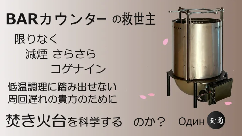 昭和39年、庭の七輪で焦げるサンマ、がっかりのお袋。平成のある日、厨房で付きっきりで焼き鳥中の私、煙・油でベッタベタ。時代は低温調理、PAHやアクリルアミドは超悪役。でもビールに合うのはBBQ。だったら減らすしかない!超減煙コゲナインでお花見デビュー!