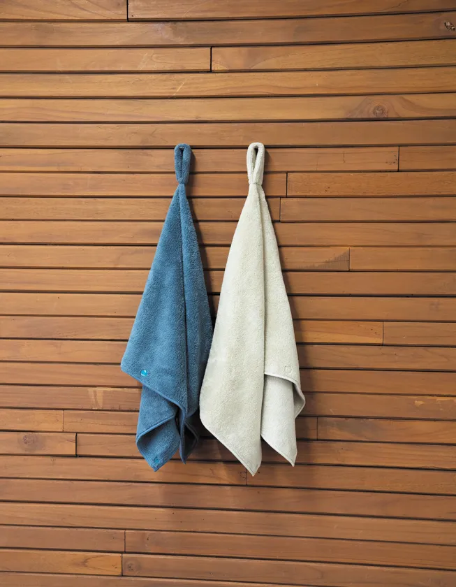 *独自のフープとボタンにより、タオルとしてはもちろん、ターバン・サウナハットとして多様なシーンに対応。