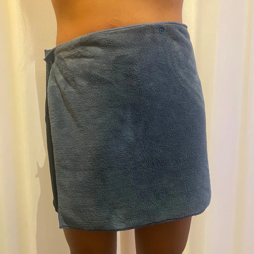 5WAY以外にも、フープがあるので、フックに引っかけることができて便利です。さらにボタンを留めれば腰巻きも可能なため、スパ内でも大活躍します。