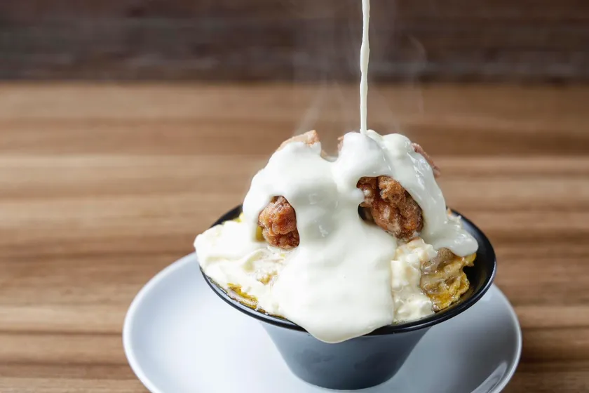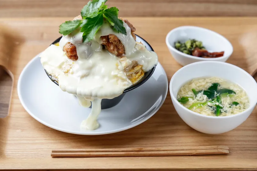 オリジナルのタレを漬け込んだ北海道産鶏のザンギと北海道産たまごの親子丼です。仕上げにとろ~りチーズをかけ食べ応え抜群の仕上がりとなりました。特製のタルタルソースをアクセントにお召し上がりいただけます。