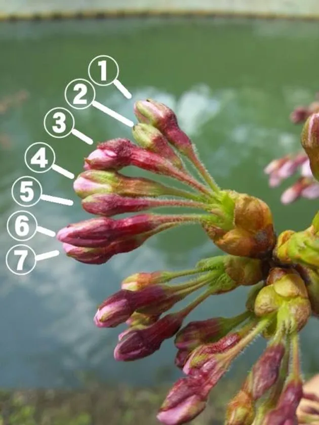 一般的に、桜は一つの花芽から咲く花の数が3~4つですが、弘前公園の桜は花が4~5つにもなります。まれに、7つの花が咲くものもあります。