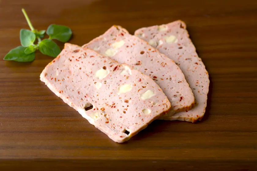 「ピザケーゼ」とは長方形の型で焼いたフライッシュケーゼという焼きソーセイジの一種です。ピザという名前が表すように、具材としてチーズやトマトが入っているのが特徴です。ピザケーゼの食べ方はおやつやおつまみ感覚でそのまま食べるのが一般的ですが、シュヴァインハイムでは「パンに乗せてトーストすると簡単ピザトーストができる」と新しい食べ方をご提案していて、お客様にもご好評いただいています。今回、更に美味しく本格ピザトーストが作れるようにピザケーゼに改良を加え、『トースト専用ピザケーゼ』として商品化しました。