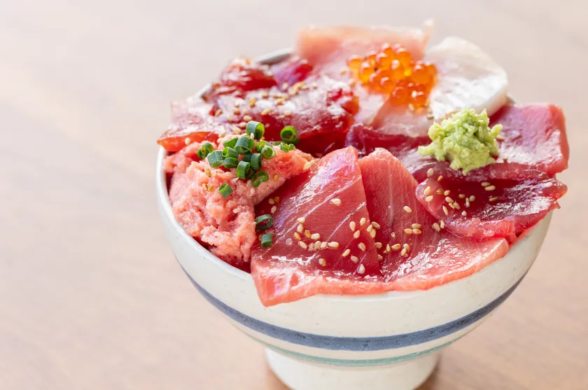 (3)おさかな食堂で人気の海鮮丼をはじめ、夜帯は海鮮うお焼きや酒の肴の数々もラインナップ!