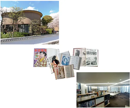 昭和24(1949)年に開館。その歴史は、小林一三が大正4(1915)年に開設した宝塚新温泉内の図書室にさかのぼり、現在は、阪急電鉄、宝塚歌劇、民俗芸能、歌舞伎に関する図書・雑誌約27万冊のほか、近代化産業遺産認定資料や宝塚歌劇のポスター、役者絵等を所蔵・公開しています。