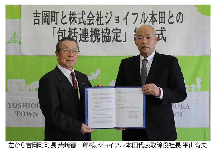 株式会社ジョイフル本田(本社:茨城県土浦市、代表取締役社長:平山育夫、以下 ジョイフル本田)は、吉岡町(群馬県北群馬郡)との間で「包括連携協定」を締結いたしました。