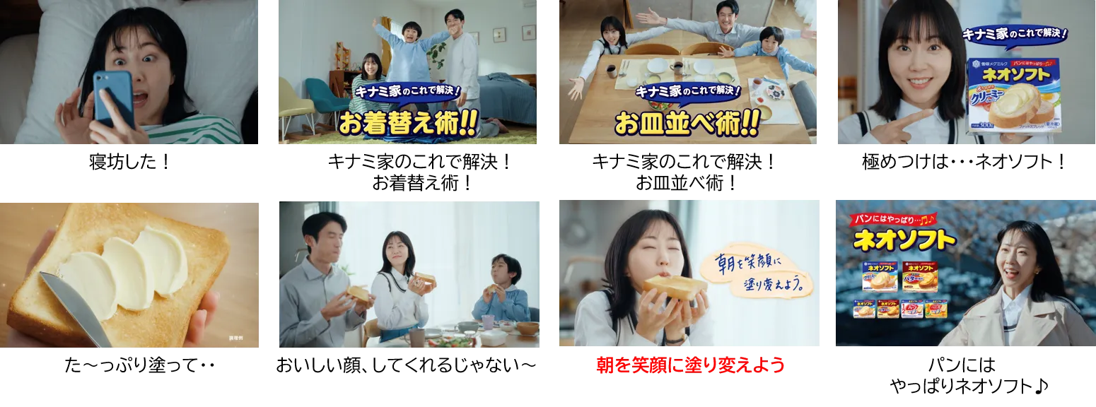 今シリーズでは、木南さんが初めてママ役に挑戦しています。忙しい朝の支度を「キナミ家」の数々の術で解決し、さらに『ネオソフト』があることで家族みんなが朝を気持ちよく笑顔で過ごすことができる様子をコミカルに描いています。