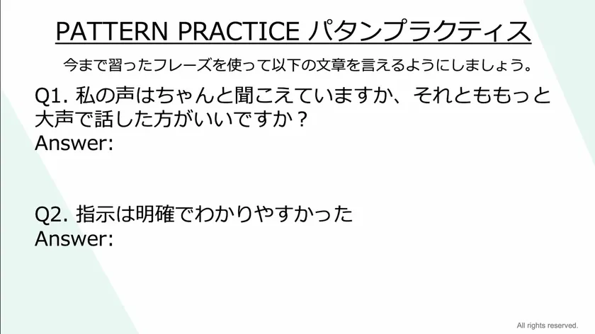 クライアントに対して電話でプロジェクト進捗の情報共有や問題解決を効果的に進めるロールプレイを学習します。電話ならではの表現を確認しながら、汎用的に使える単語を習得します。