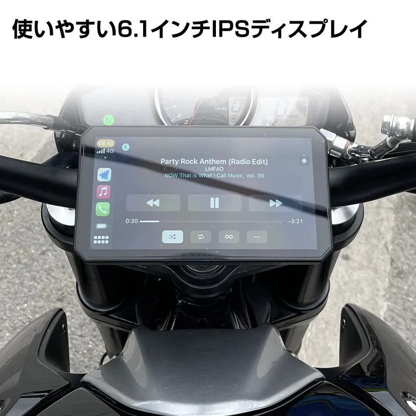 ハンドルに設置しても圧迫感のないコンパクト形状でグローブをしていても使いやすい6.1インチディスプレイ。