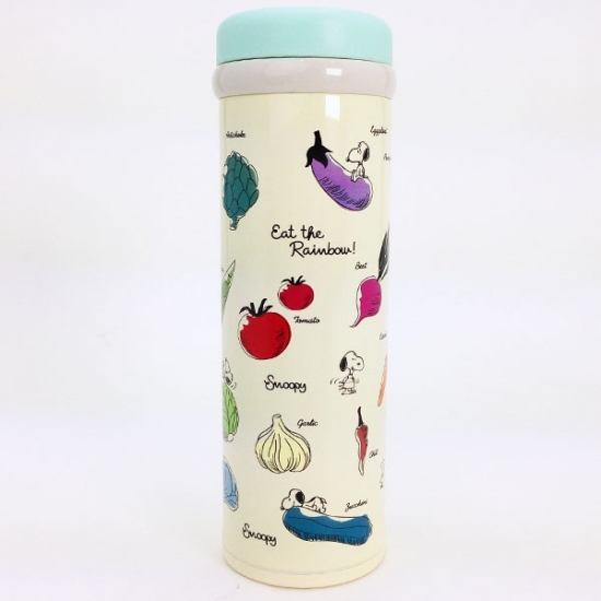 こちらは、たっぷり350ml入る、スヌーピー野菜シリーズのボトルです。ランチタイムが楽しくなりそうなポップなデザインが特徴。