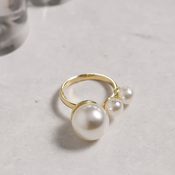大小大きさの異なるパールが指先にアクセントをプラスしてくれるリング。一見大ぶりで難しそうに見えますが、これ1つ着けるだけで手元を華やかな印象へ導いてくれます。上品なパールデザインが大人の女性らしさを引き立てるアイテム。