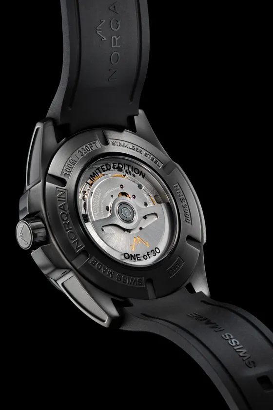 その精神は、ノルケイン創業時からそのポテンシャルの高さを見抜き、業界に先駆けてパートナーシップを結んだISHIDAにも貫かれています。今回、発表されるIndependence 42mm DLC “ISHIDA” Limited EditionはまさにノルケインとISHIDAのコラボレーションを象徴するにふさわしいモデルで、ケースバックには“LIMITED EDITION”、“ONE of 30”と記され30本のみ生産されます。