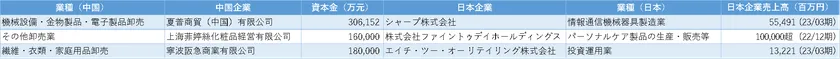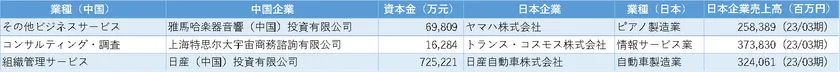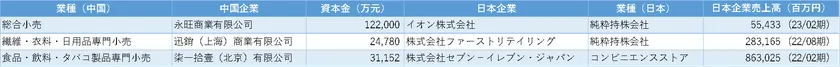 前述のように、中国に進出している日系企業の過半数は、卸売業・ビジネスサービス業・小売業の3業種に集中しています。この上位3業種について注目し、各細分類業種で最も資本金額の高い企業を調査しました。