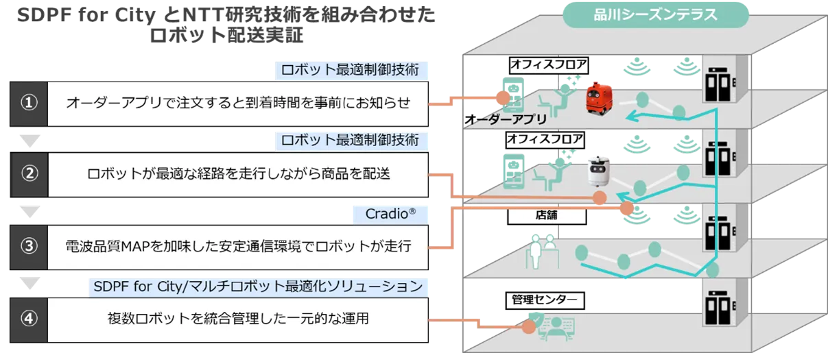 品川シーズンテラスでNTTグループの技術を複数活用した ロボット配送実証を実施