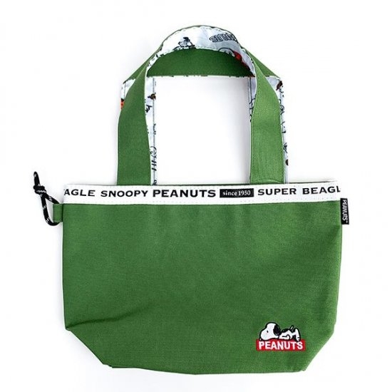 ミニトートだってシンプルかっこいい。ワンポイントでねそべりスヌーピーが刺繡されています。シンプルだからどんなコーディネイトにも合わせやすく、気軽に持てるバッグです。