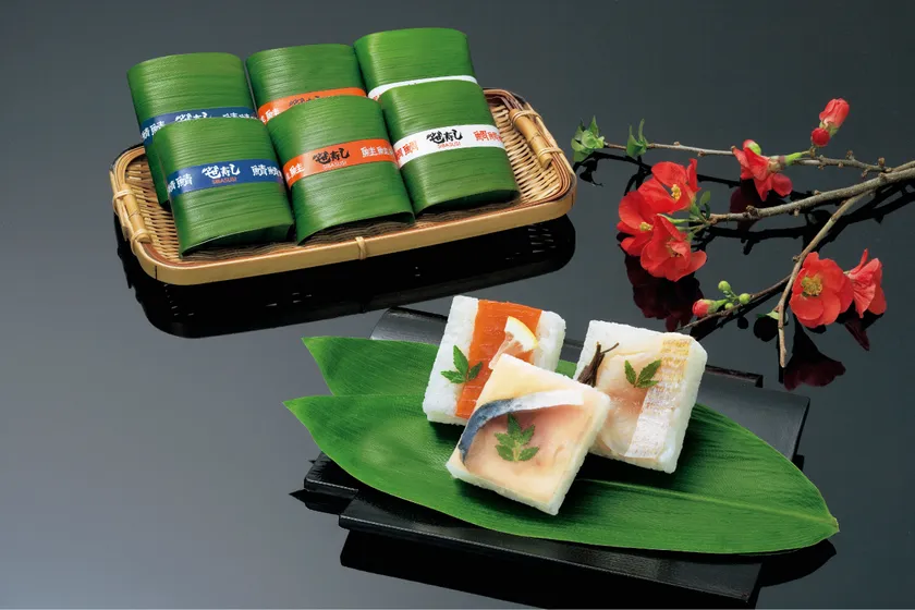 金沢駅で大人気の笹寿し。紅鮭・連子鯛・鯖の3種類の味を楽しめます。