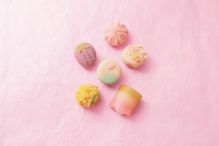 桜・藤・イースターモチーフの煉切やきんとんなど、春らしく可愛い和菓子。