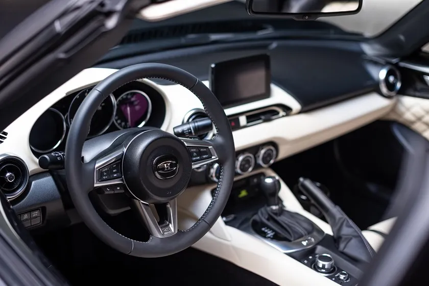 インテリアはベースのMX-5のままですが、ふんだんに使われたレザーとウッドによりベース車両とは全く違っていて高級感が増しています。ボディカラーと同様にインテリアの表皮の素材、カラーは自由に決めることができます。
