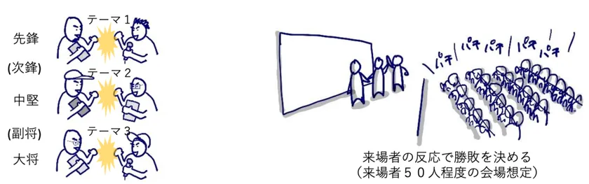 『エンタメ系まちづくり』をコンセプトに、社会課題、地域課題、企業課題等のテーマについて、日本各地のクリエイター達の自由で創造的なアイデアを競う、クリエイターによるアイデアバトルです。
