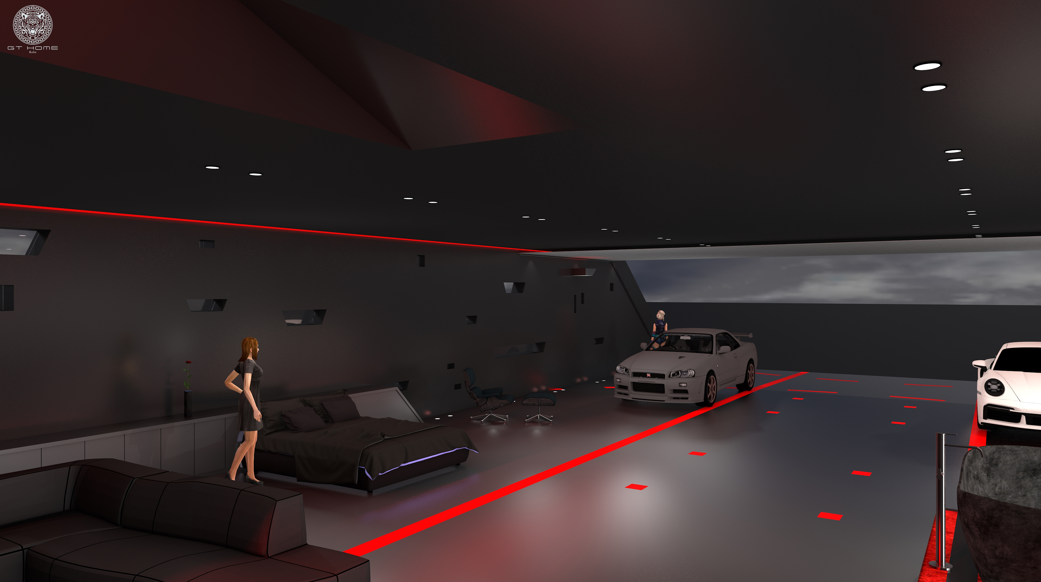 これまでは、ガレージアパートメントに関してはひとつのデザインイメージで統一していましたが、『GT HOME』の他のモデルのデザインも採用できるようにし、様々なテイストで愛車のための空間が実現できるようにしました。