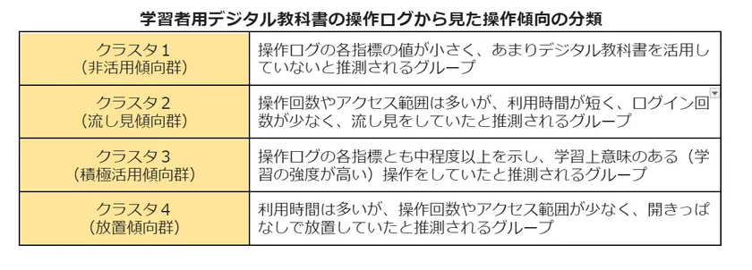 学習者用デジタル教科書の操作ログから見た操作傾向の分類