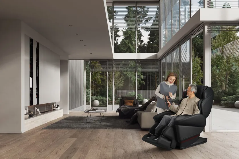 AIによる繊細なもみ心地を実現した「5D-AIメカPLUS」、一人ひとりに合わせてマッサージを最適化する「AIダブルセンシング+」、リラックスした寝姿勢で心地よいマッサージができる「トータルリラックスポジション」など、当社最高峰クラスのマッサージ機能を搭載しており、日々の体の変化に合わせたトータルボディケアを行うことができます。また、その時々の疲れや気分、生体情報をもとにAIが最適なマッサージを生成してプログラムを随時更新する「アプリモード」や、耳元に向けられ包み込まれるような贅沢な音響空間を体感できるBluetooth(R)対応スピーカーも搭載しており、特別なマッサージ体験をお楽しみいただけます。