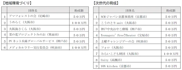 「地域環境づくり」と「次世代の育成」に取り組む 合計15団体に総額900万円を助成