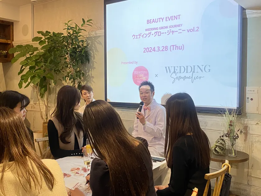プロテオグリカン素材事務局は、注目の美容成分“プロテオグリカン”の魅力を発信するためにスタートした「プロテオグリカン2週間ハリツヤ肌プロジェクト」の活動の第2弾として、「ウェディングソムリエ」(運営:J'adore Wedding株式会社、所在地:東京都港区、代表取締役:坂井 夏子)と協同し、花嫁の大切な日を応援しています。昨年11月2日に開催された結婚式に向けてもっと輝く花嫁になるためのイベント「ウェディング・グロー・ジャーニー」では、ご参加いただいた花嫁の皆さまより、「大切な日に向けてモチベーションが上がった。」「とても勉強になった。」といった感想を多くいただき、好評のイベントとなりました。この度は大好評につき、3月28日(木)に30名の花嫁グラマーをお招きし、第2弾のイベント、「ウェディング・グロー・ジャーニーvol.2」を開催いたしました。