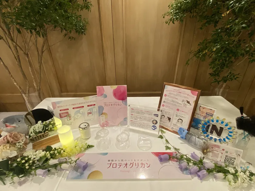 優れた保水力を持つプロテオグリカンは、美肌成分を生み出す線維芽細胞や、コラーゲンやヒアルロン酸などの美肌成分を増やす働きがあります。高橋さんからはプロテオグリカンの効果やメカニズム、エビデンスについて語られ、耳かき1さじ程度の量である5mgを2週間経口摂取することで、肌のシワやたるみ、弾力の改善が認められているという、インナーケアにおけるプロテオグリカンの魅力について詳しくご紹介いただきました。ご参加いただいた方の中には、講演後にも熱心に質問をされている方もいらっしゃいました。短期間少量で効率よくハリのある肌を目指すことができるプロテオグリカンについてしっかりと学んでいただける時間となりました。