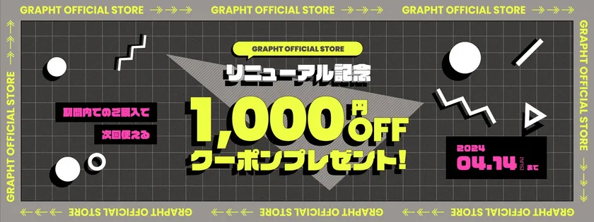 GRAPHT OFFICIAL STOREにて対象期間内にご購入の方に、次回使える1,000円OFFクーポンをプレゼントいたします。