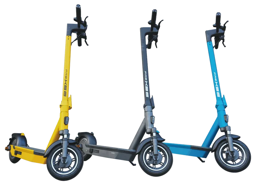 KS6 PROは、運転免許証を取得されていない方や通勤前のヘアスタイルの乱れなどが気になる方にお勧めの特定原付モデルの電動キックボードです。1回の充電で航続距離60km。モーター出力は500Wと圧倒的なパワーを備え坂道が多い日本の道路でもラクラク走行することが出来ます。道路運送車両法の遵守はもちろん、実証実験を繰り返し行い乗り心地や操作性を追求した当社ならではの日本専用モデルになります。