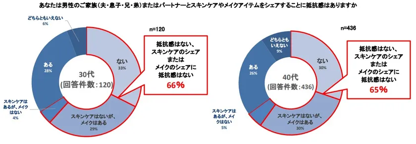 男性家族との化粧品シェアについてグラフ30代40代