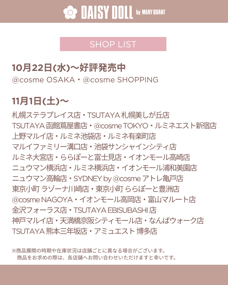 10月22日(水)~:@cosme OSAKA、Amazon デイジードール公式ショップ