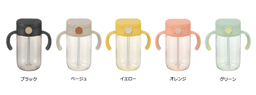 アスターおでかけストローマグ320は、軽くて丈夫な「トライタン」※1製でガラスの様な透明感のクリアボトル。容量はおでかけにも便利な320mL。今回発売する新カラーはママがファッション感覚で“お気に入り”を選んでもらえるように5色をラインナップしました。ブラック・ベージュ・イエローはファッション性のある斬新な最先端カラーで、人とは違う特別感を。オレンジ・グリーンはちょうど良い心地よさを感じられる少し大人っぽさのあるカラーに。ボトル本体もフタに合わせたカラーリングを施し、シンプルなデザインに仕上げました。気分に合わせて複数持ちもおすすめです。※1:イーストマンケミカル社の商標です。