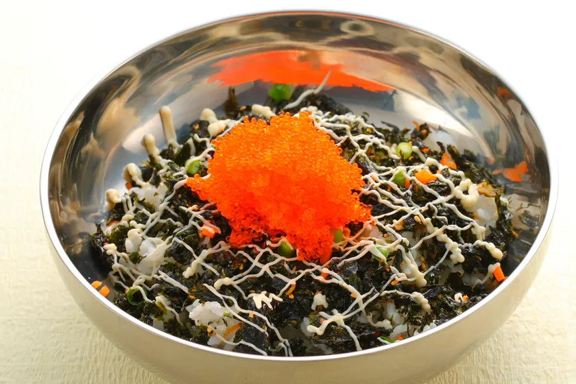 プチプチなとびっこと韓国海苔の香ばしさ、マヨネーズのまろやかさが調和する一品。