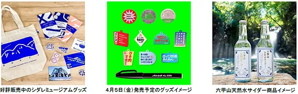 六甲ガーデンテラスエリア内の「六甲おみやげ館」「ホルティ」の2店舗では、トートバッグや手ぬぐい、ステッカー等のシダレミュージアム限定グッズを販売しております。4月5日(金)からは、パワーワードが書ける気がしてくる「パワーワードペン!!!!!」や、メインビジュアルをモチーフとしたアクリルキーホルダーや缶バッジ等を発売予定です。六甲山名物の「六甲山天然水サイダー」や六甲山はちみつ「やまみつ」シリーズ商品とあわせて、ぜひお買い物もお楽しみください。