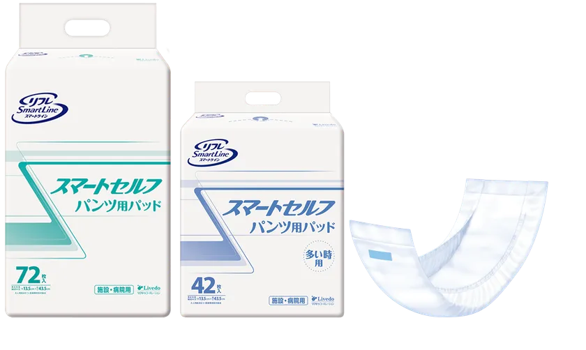 そこで、当社では「自分でパッドを交換したい」、「お肌にやさしい商品を使いたい」というお客様の声をもとに「リフレスマートライン スマートセルフ パンツ用パッド」を発売いたしました。
