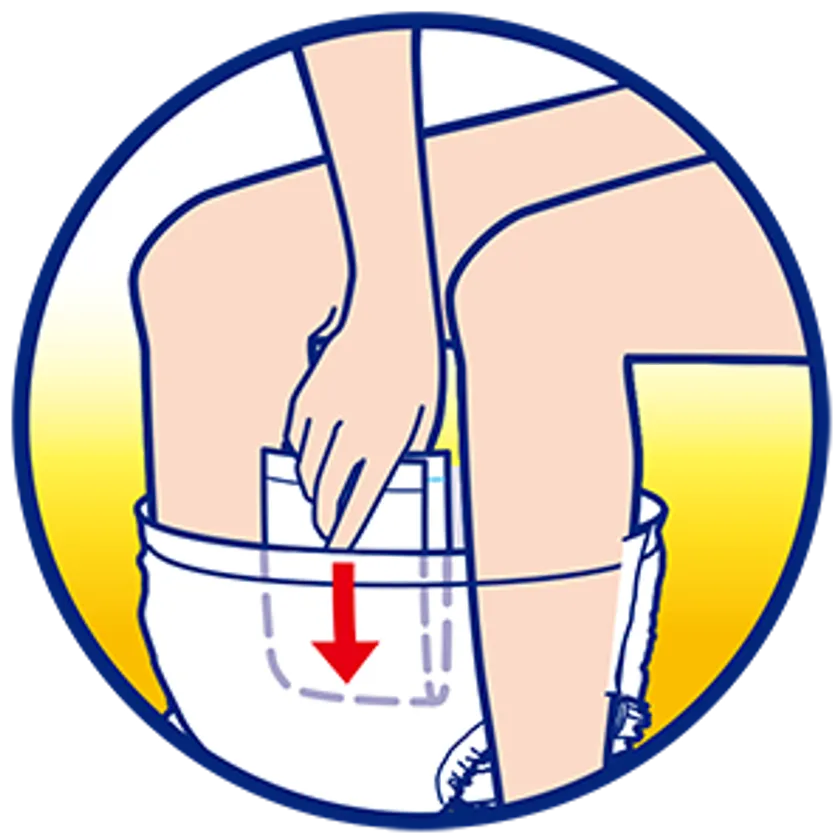→紙パンツの中で広げやすく、手間いらずで装着できます。