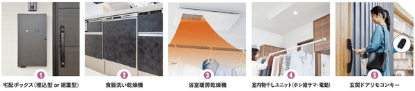 また、昨今の生活様式で人気を集める「利便性の高い設備」や「デザイン性の高い仕様」の中から、設備1点・仕様3点を標準工事費内でグレードアップすることができます。