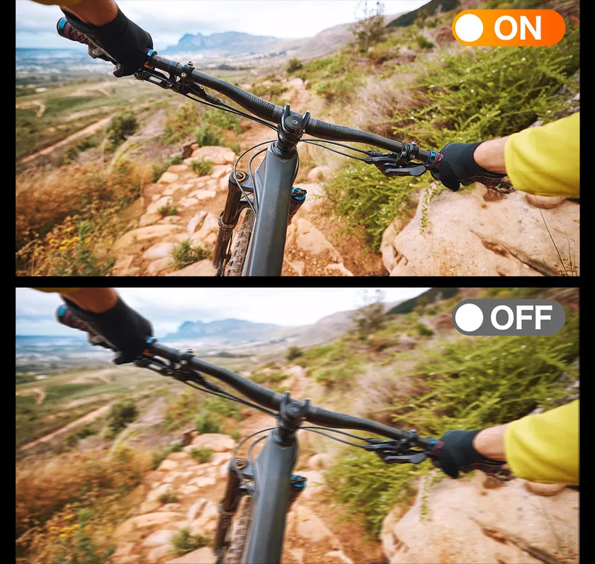 電子式手振れ補正機能搭載で、揺れの激しい場面でもスムーズに撮影することができます。