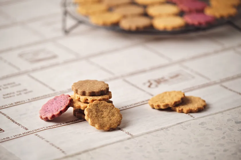 プレーン(北海道産小麦)/抹茶(愛知県西尾産)/瀬戸内レモン(広島県産)/和三盆(徳島県産さとうきび)/黒糖(鹿児島県産)/あまおういちご(福岡県産)/和紅茶(静岡県産)/ブラッドオレンジ(愛媛県宇和島産)