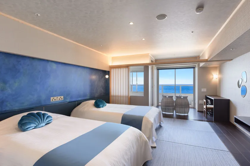 同ホテルは昨年から今年にかけ、新規の客室、大浴場プロジェクションマッピング、湯上り処の新設など積極的にリニューアルを行い、2024年3月に一般客室が紀州をテーマにした和室とハワイをテーマにした和室に改装されたことにより、ほぼ全室が一新され、これを記念して特別プランを販売することにいたしました。