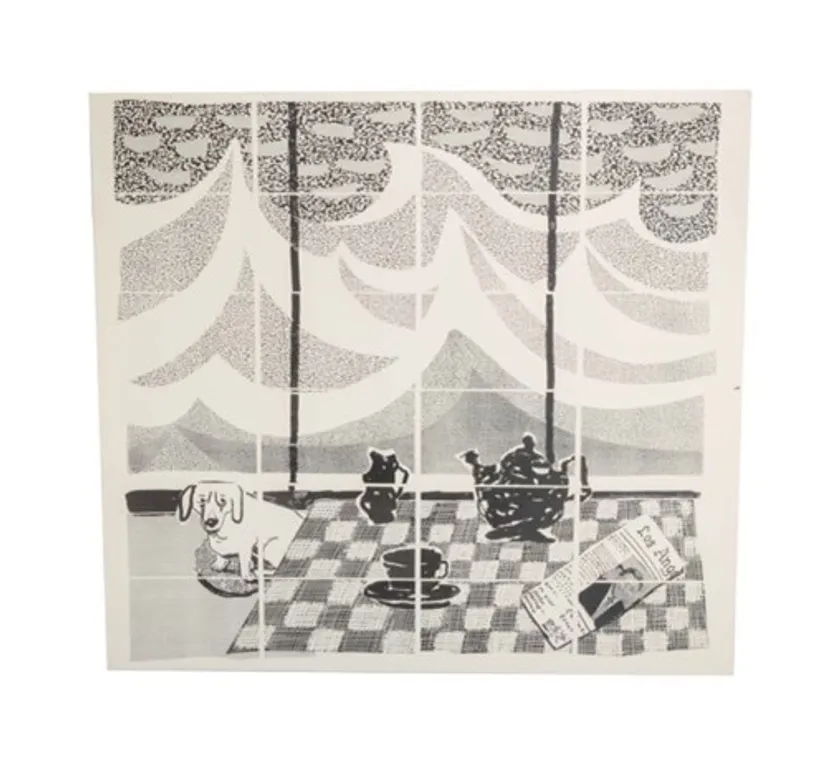 David Hockney Original Still Life, black and white image printed on 24 panels of poster board, a Gift to Bennett 50.75 x 55.75 inches