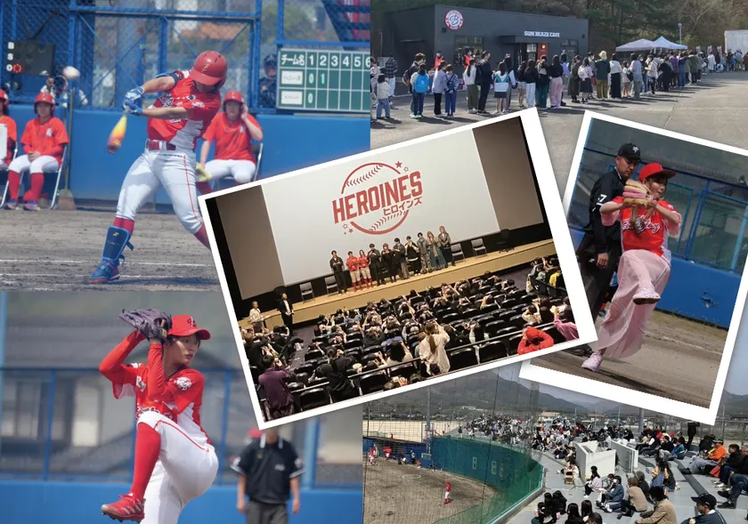 広島県廿日市市の女子野球チーム“はつかいちサンブレイズ”を題材にした短編映画『HEROINES』の上映を記念して、はつかいちサンブレイズの今季のオープンニングゲームを3月30日にサンブレイズボールパークにて開催しました。人気YouTuberフォーエイト48に来場いただき、撮影会や始球式で会場を盛り上げていただきました。球場には前代未聞の長蛇の列が出来ました。
