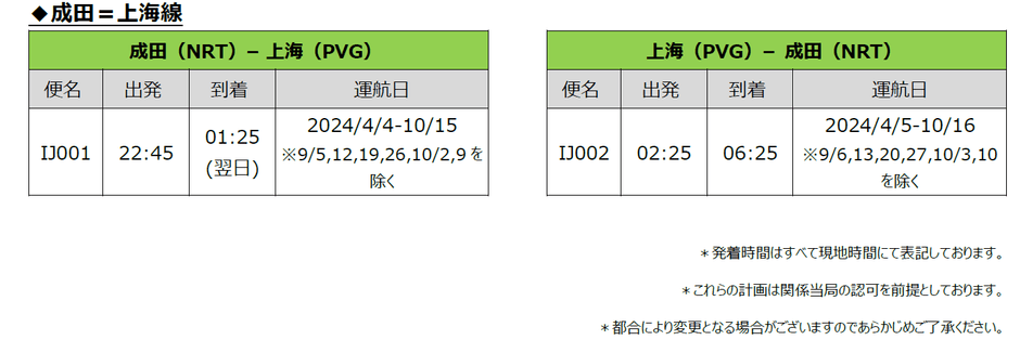 スプリング・ジャパン 2024年夏ダイヤ 上海線の販売開始について