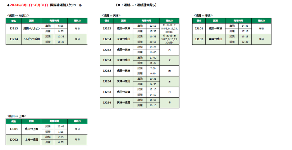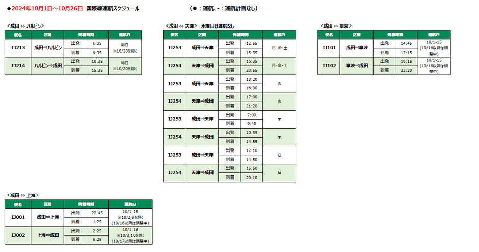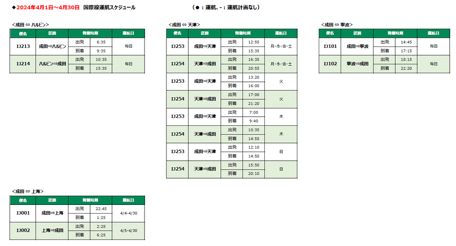 JALグループのLCCであるスプリング・ジャパン株式会社(以下:スプリング・ジャパン)は、本日10時より、2024年夏ダイヤの成田=上海線の販売を開始します。これにより国際線は成田=ハルビン線、天津線、寧波線と合わせ4路線運航となります。