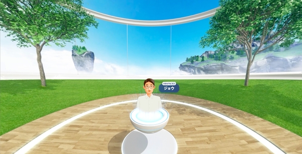 「感情認知トレーニング」では、対人不安によって集団に入ってトレーニングに参加できない方が一人で実施できるよう、支援者の代わりにVRセラピストが、VR内の進行を担当します。